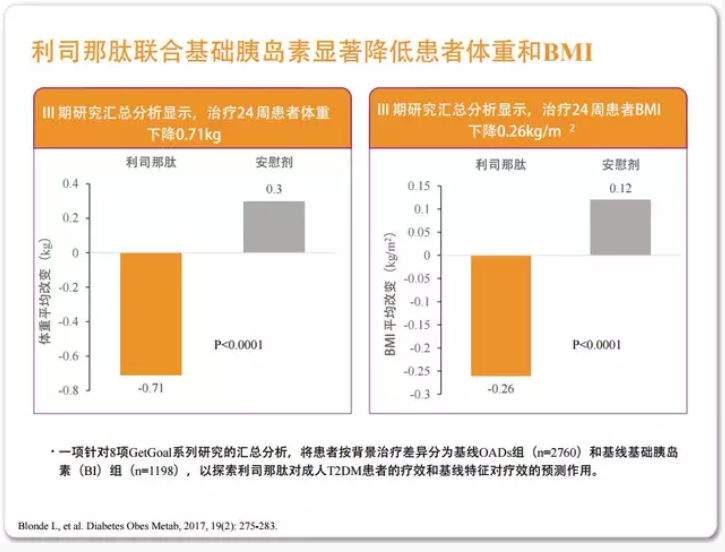 利司那肽聯(lián)合基礎(chǔ)胰島素治療的療效與預(yù)混胰島素治療相當(dāng),能顯著降低患者體重,同時并不增加低血糖風(fēng)險。