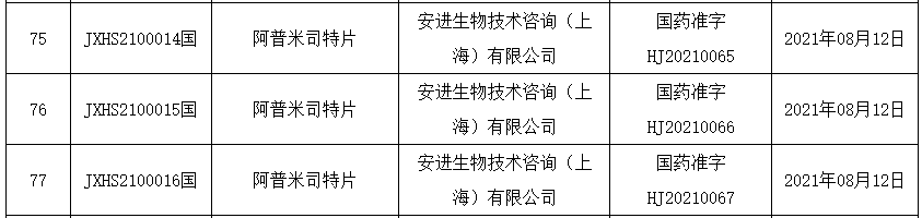 8 月 16 日,NMPA 官網(wǎng)顯示,安進(jìn)的進(jìn)口新藥「阿普米司特片」獲批上市,用于銀屑病。