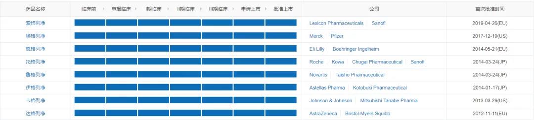 根據(jù)醫(yī)藥魔方數(shù)據(jù)庫顯示,全球目前共有8款SGLT-2抑制劑獲批上市,其中,卡格列凈(強(qiáng)生)、達(dá)格列凈(阿斯利康)、恩格列凈(勃林格殷格翰/禮來)和艾格列凈(默沙東)已經(jīng)全部在中國獲批上市,前3者也已經(jīng)都通過談判納入了2019年國家醫(yī)保乙類目錄。