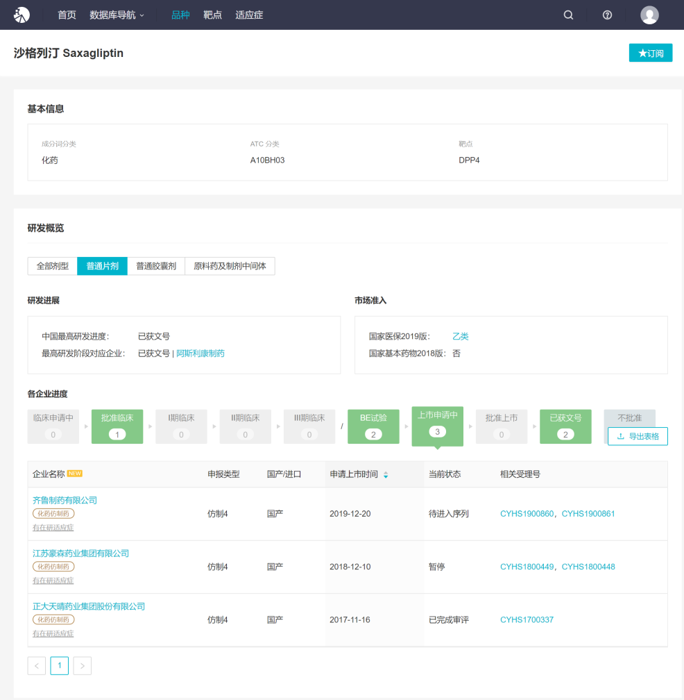 9月11日,正大天晴的4類(lèi)仿制藥沙格列汀片獲國(guó)家藥監(jiān)局批上市,并視同通過(guò)一致性評(píng)價(jià),為該品種國(guó)內(nèi)第二家仿制。