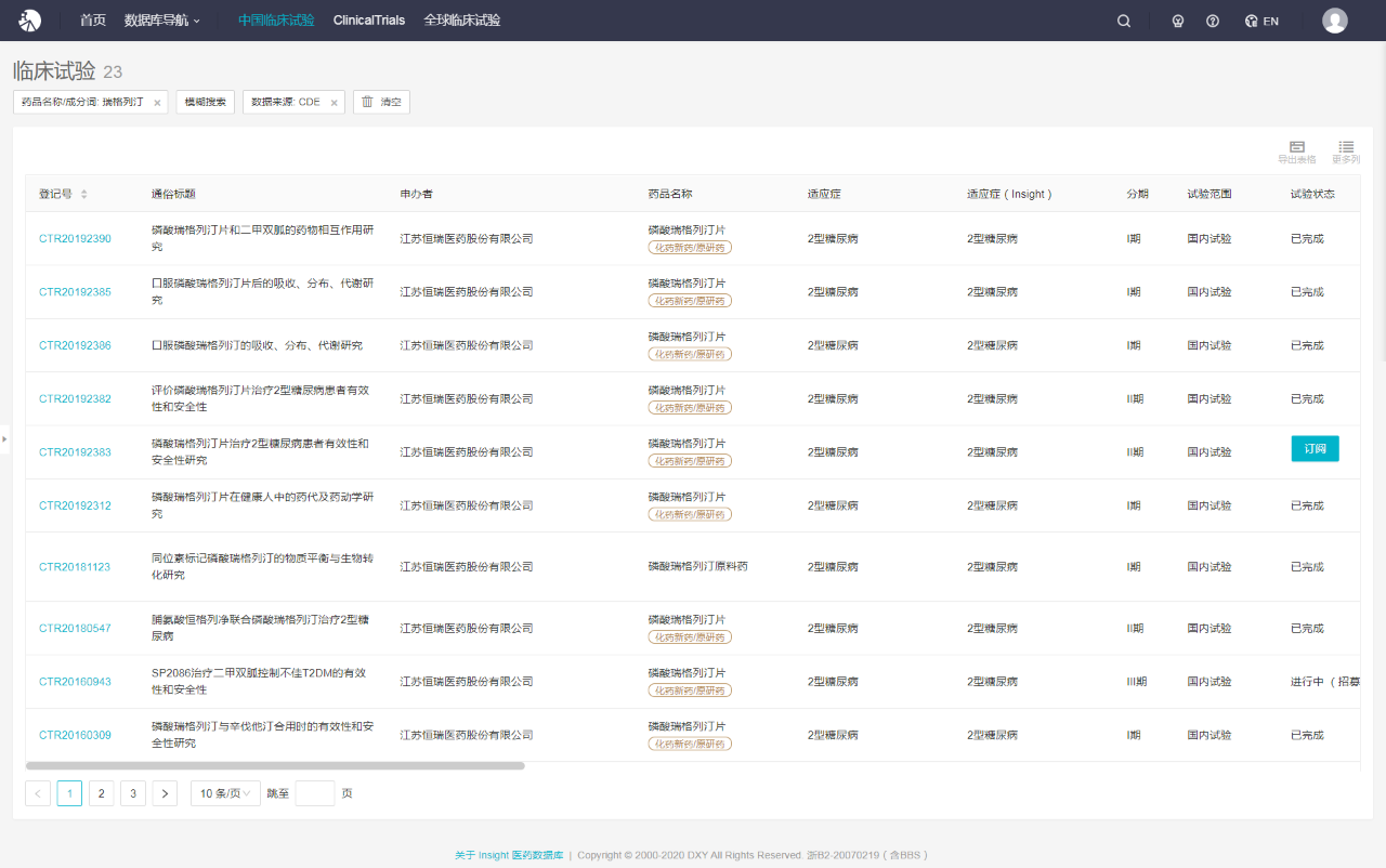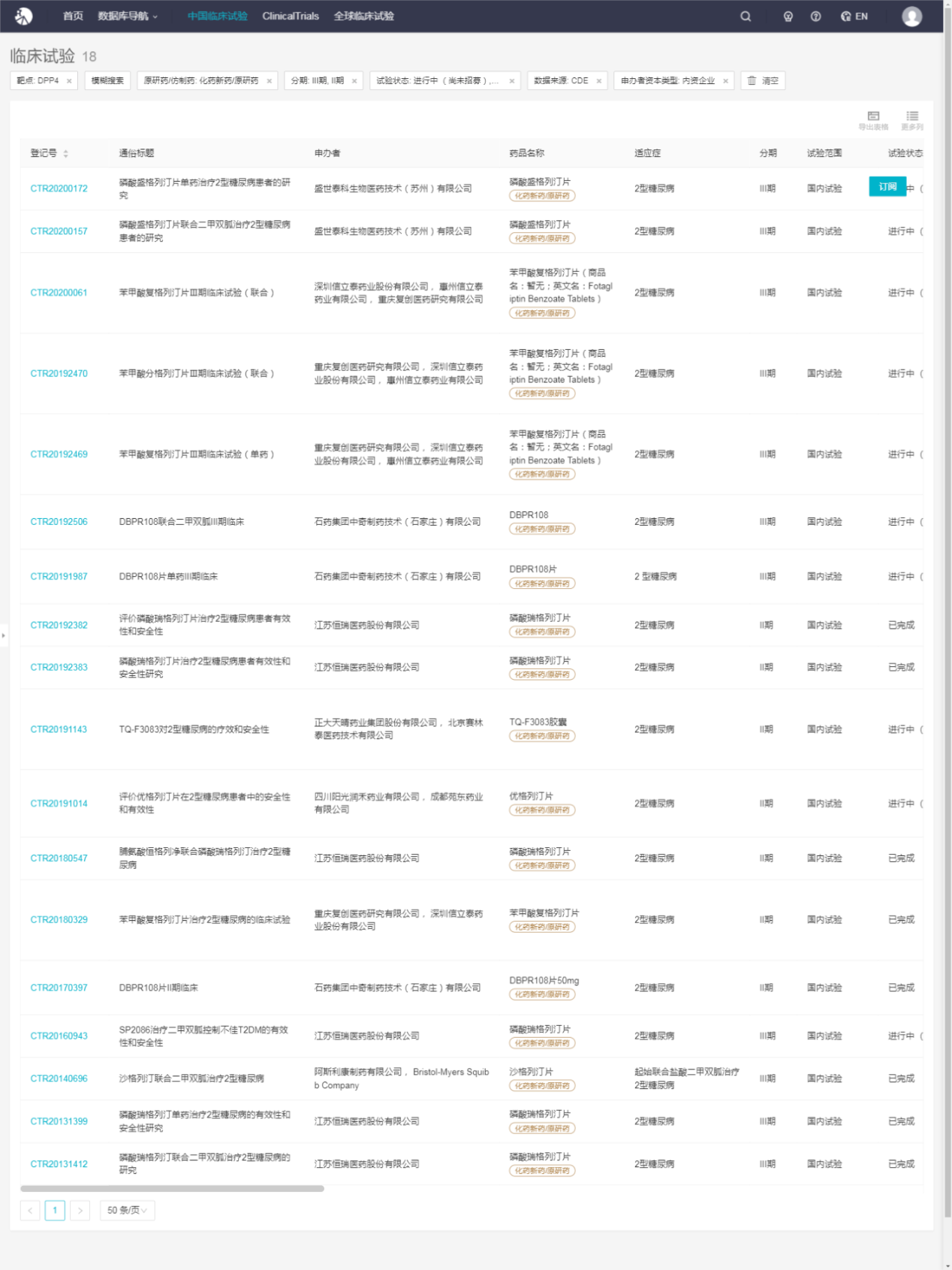 公開數(shù)據(jù)顯示,瑞格列汀在結(jié)構(gòu)上市與西格列汀相似,據(jù)悉恒瑞在2015年主動(dòng)撤回時(shí)已投入超1億元的研發(fā)費(fèi)用。之后在2016年,恒瑞再次啟動(dòng)瑞格列汀臨床實(shí)驗(yàn),截止目已在CED登記的臨床試驗(yàn)達(dá)到23項(xiàng)。