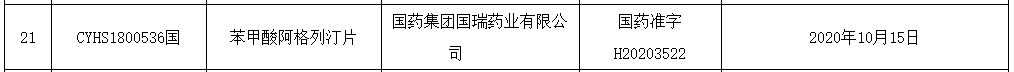 10月19日,NMPA發(fā)布批件顯示,國(guó)藥集團(tuán)國(guó)瑞藥業(yè)4類仿制藥「苯甲酸阿格列汀片」獲批,為國(guó)產(chǎn)第五家。