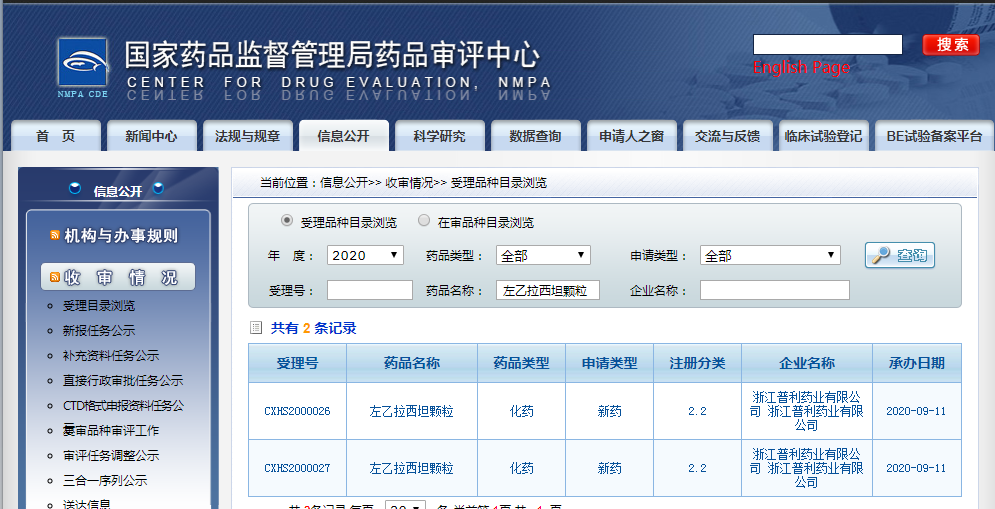 2020年9月11日,國家藥品監(jiān)督管理局藥品審評中心網(wǎng)站顯示,浙江普利藥業(yè)2.2類改良型左乙拉西坦顆粒上市獲受理,該劑型目前沒有其他企業(yè)在研。