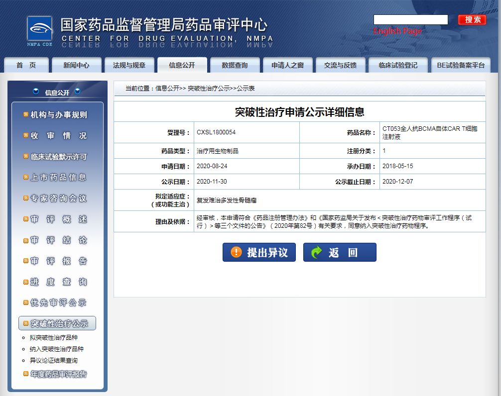 11 月 30 日,國家藥監(jiān)局藥品審評中心(CDE)官網(wǎng)最新公示,上海科濟制藥的 CT053 全人抗 BCMA 自體 CAR-T 細胞注射液擬納入突破性療法,用于治療復發(fā)難治多發(fā)性骨髓瘤。