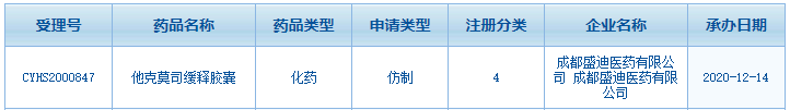 12月14日,CDE官網(wǎng)顯示,恒瑞「他克莫司緩釋膠囊」遞交上市申請獲受理。目前,對于他克莫司緩控釋劑型,僅原研安斯泰來獲批上市,而無國內(nèi)仿制藥獲批。