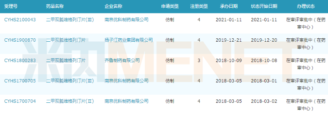 二甲雙胍維格列汀片在審評(píng)審批企業(yè)