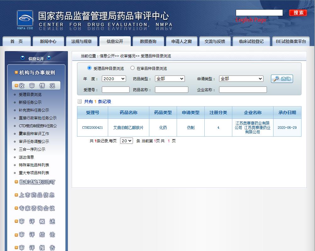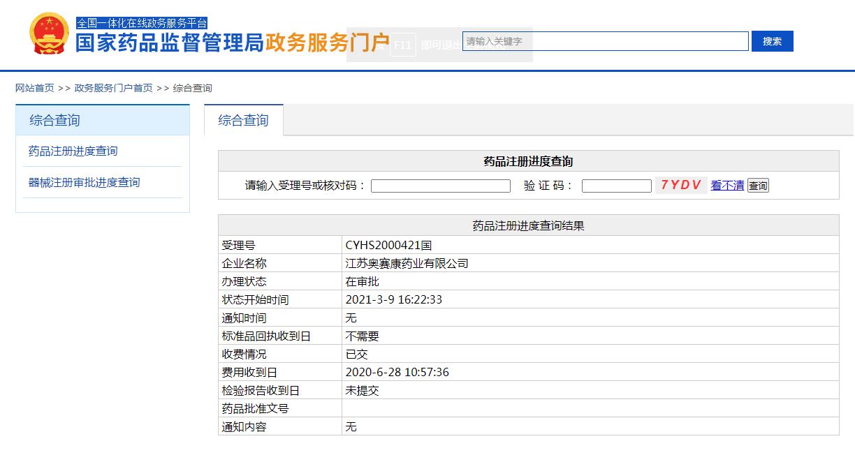 近日,奧賽康按注冊(cè)分類4申報(bào)的艾曲泊帕乙醇胺片上市申請(qǐng)(受理號(hào):CYHS2000421)辦理狀態(tài)在國家藥品監(jiān)督管理局(NMPA)藥品注冊(cè)進(jìn)度查詢結(jié)果顯示為“在審批”,有望于近期獲得NMPA批準(zhǔn)上市,目前該品種國內(nèi)已有原研上市。
