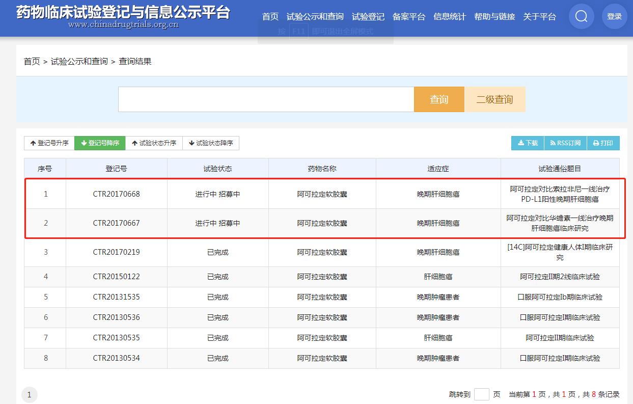 2021年5月7日,北京珅諾基醫(yī)藥科技(盛諾基子公司)提交的阿可拉定軟膠囊上市申請獲得了國家藥品監(jiān)督管理局(NMPA)藥品審評中心(CDE)并擬納入優(yōu)先審評,用于治療既往未接受過全身系統(tǒng)性治療的不可切除的肝細胞癌。