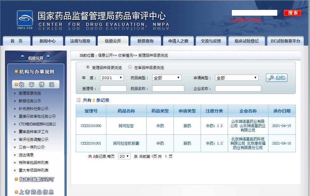 之后,在2021年4月10日,珅奧基重新按中藥注冊分類 1.2類遞交了阿可拉定的上市申請。