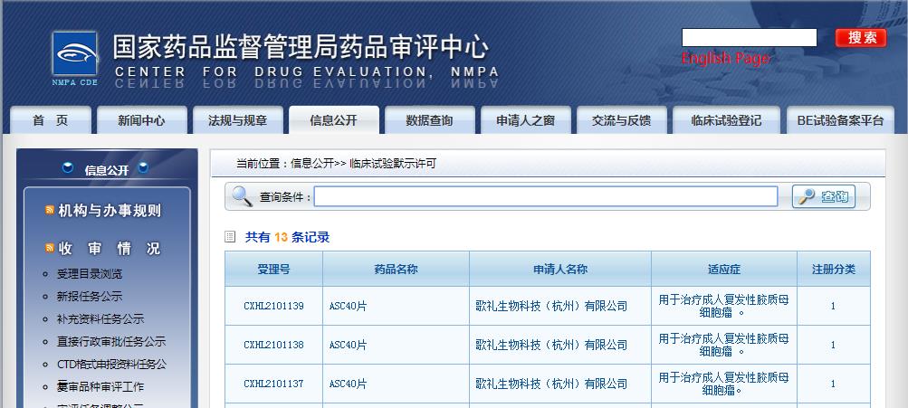 2021年7月22日,歌禮生物科技(杭州)有限公司發(fā)出公告,中國(guó)國(guó)家藥品監(jiān)督管理局(NMPA)批準(zhǔn),開(kāi)展ASC40聯(lián)合貝伐珠單抗治療復(fù)發(fā)性膠質(zhì)母細(xì)胞瘤(rGBM)患者的3期臨床試驗(yàn)。